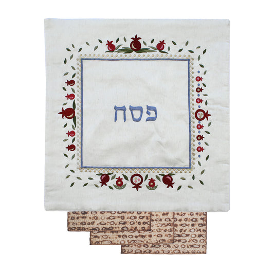 Silk Embroidered Matzah Cover – Scattered Pomegranates