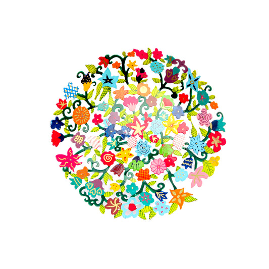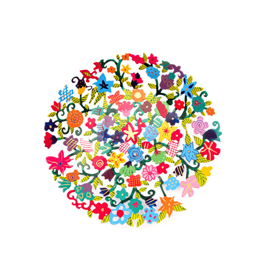 Hand-Painted Metal Bowl – 10" Flowers