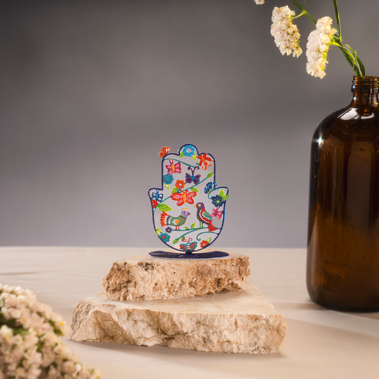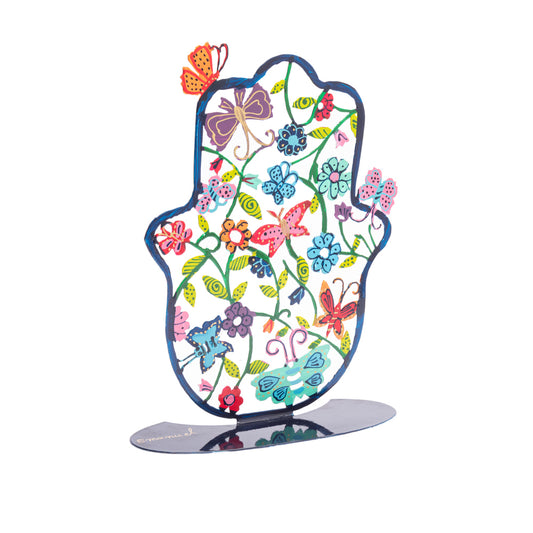Hand-Painted Hamsa Stand - Butterflies and Flowers