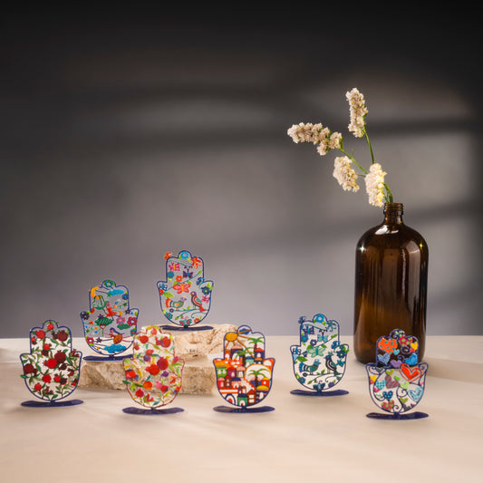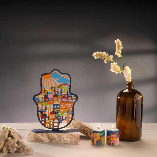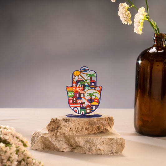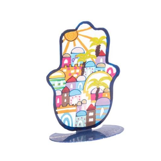 Large Hand-Painted Hamsa Stand - Jerusalem