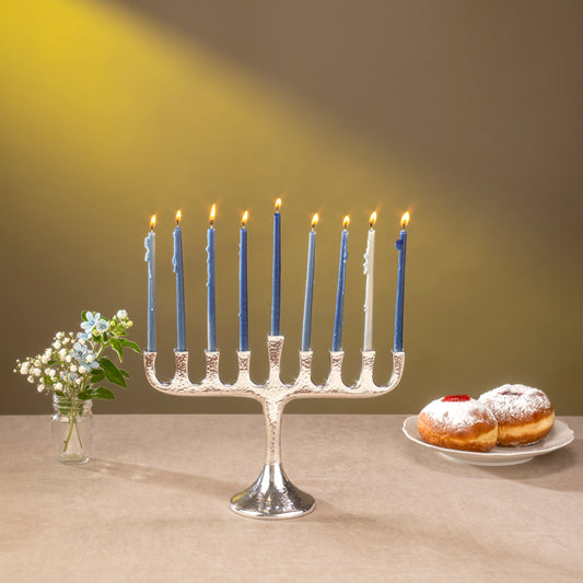 Large Hanukkah Menorah - Modern Hammered Aluminum