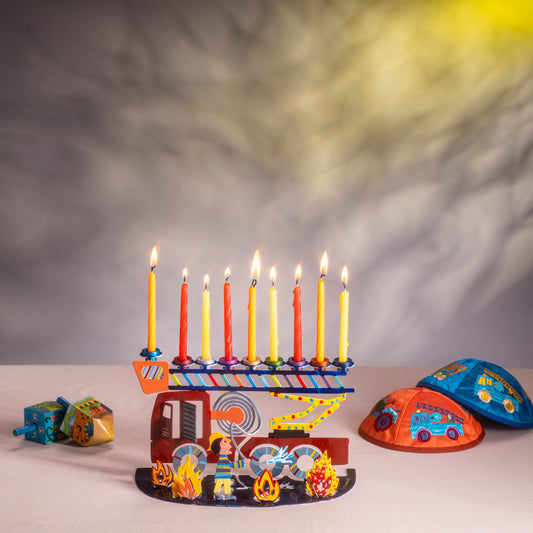 Hanukkah Menorah - Hand Painted Fire Truck Design