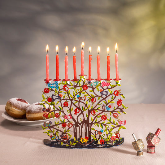 Hanukkah Menorah - Colorful Lazer-Cut Tree of Life