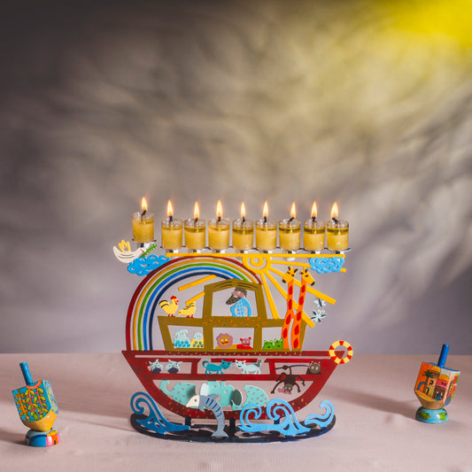 Hanukkah Menorah Hand Painted Noah's Ark