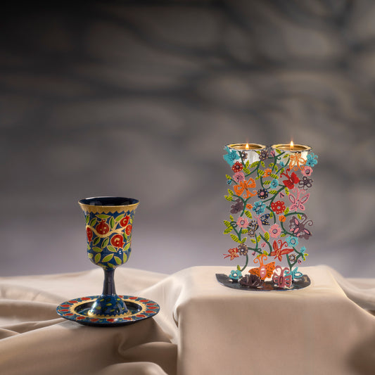 Hand-Painted Metal Kiddush Cup Set