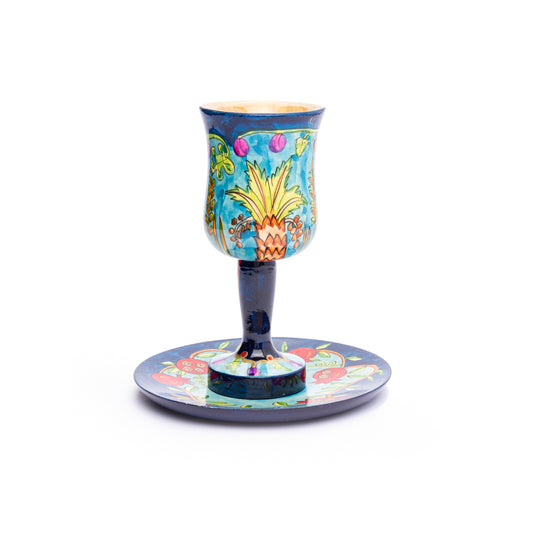 Hand-Painted Wooden Kiddush Cup Set – Seven Species