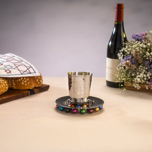 Kiddush Cup and Plate with Multicolored Beads