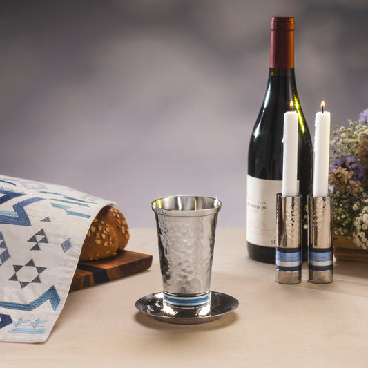 Hammered Stainless Steel Kiddush Cup and Plate Set – Jerusalem Trim