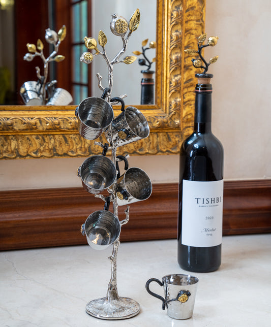 Kiddush Cup Set with Sculpted Pomegranate Stand