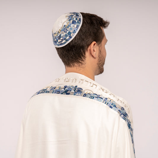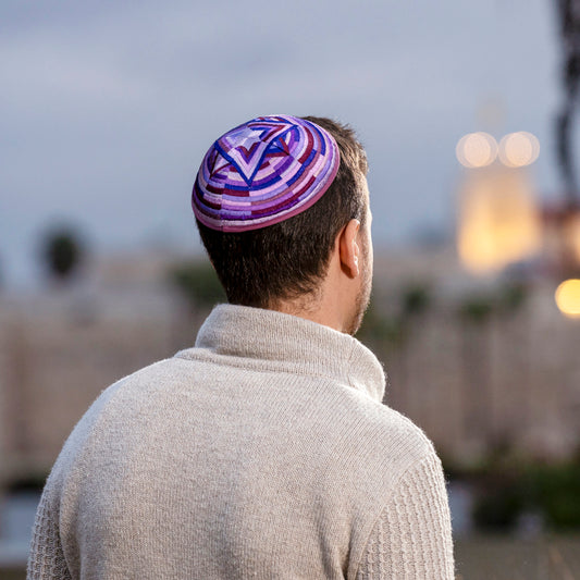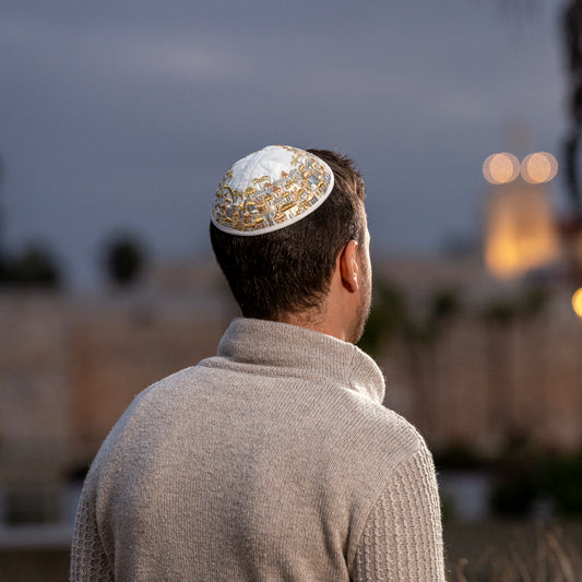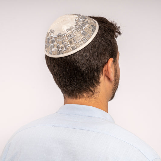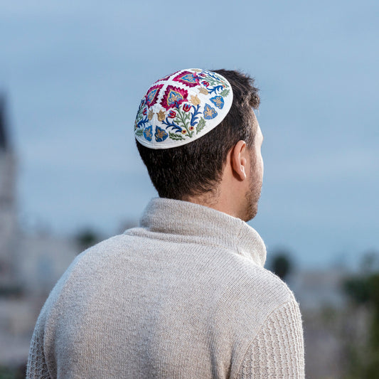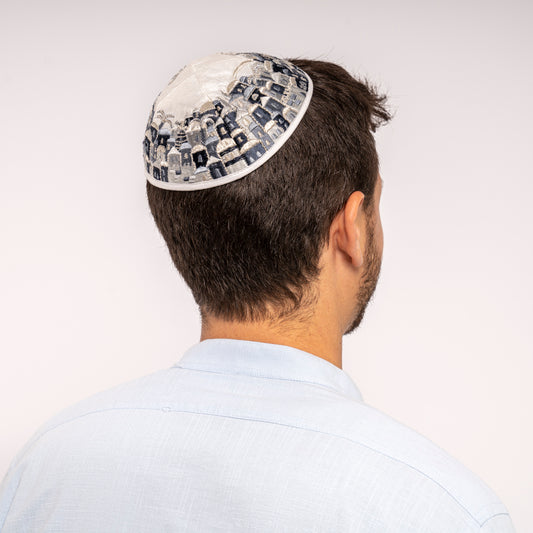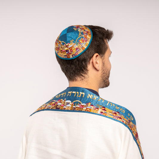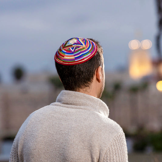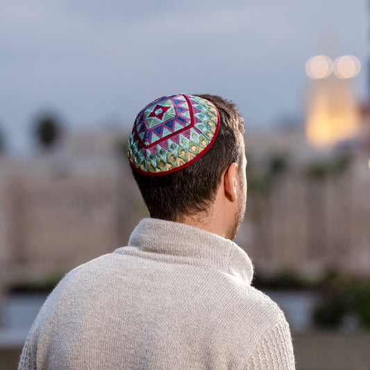 Premium Embroidered Kippah - Jerusalem - Multicolored