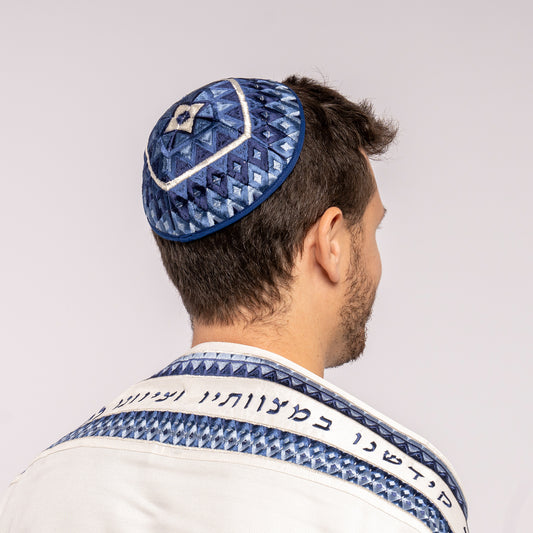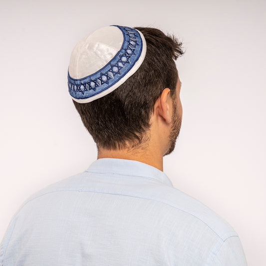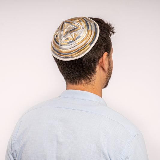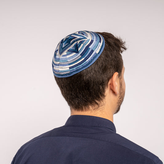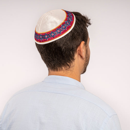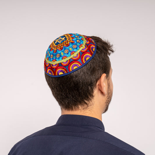 Embroidered Kippah - Mosaic Star of David - Multicolored