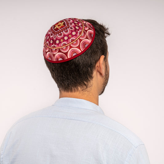 Embroidered Kippah - Rainbow and Star of David - Maroon