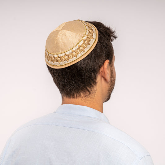 Embroidered Kippah - Rainbow and Star of David - Gold
