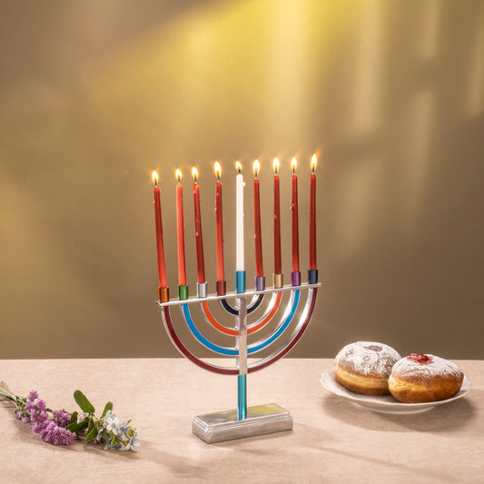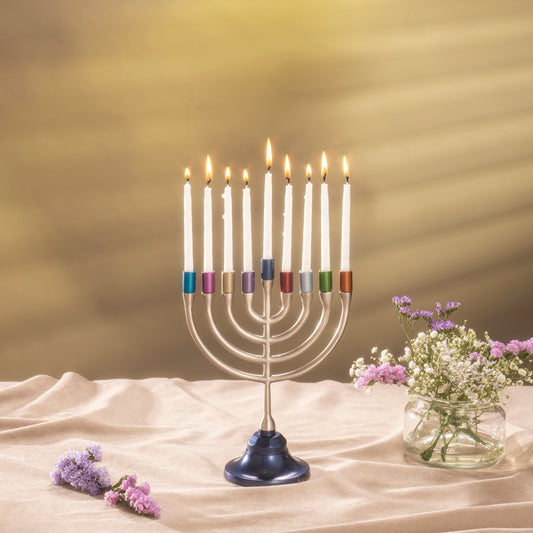 Hanukkah Menorah with Assembled Colorful Candleholders