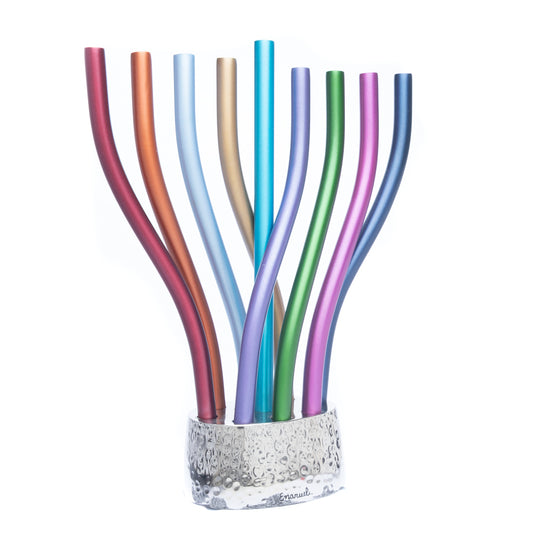 Hanukkah Menorah - Hammered Round Strip Multicolor Candle holders