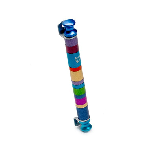 Modern Anodized Aluminum Mezuzah Case with Colorful Rings