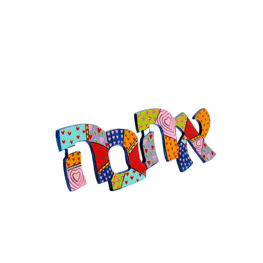 Hand-Painted Metal Hebrew "Ahava" Love Sign – 10.5" x 4"