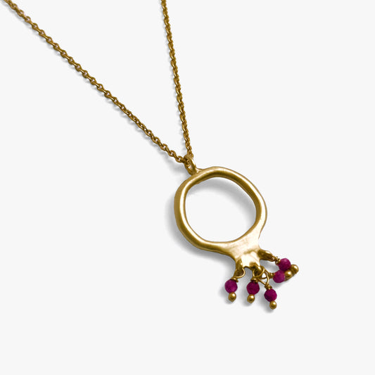 Gold-Plated Pomegranate Pendant Necklace – Ruby or Turquoise Beads 24" + 1.5" Chain