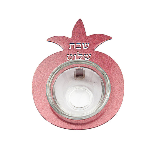 Flat Plate Shabbat Candle Holders – Hand-Painted Pomegranates