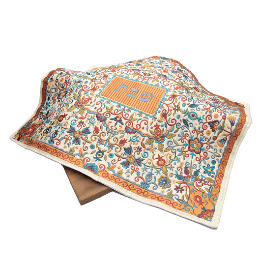 Premium Challah Cover – Silk Embroidered Pomegranates Vines