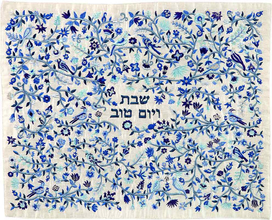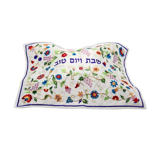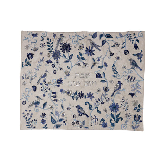 Premium Silk Embroidered Challah Cover – Multicolored Birds and Floral Design