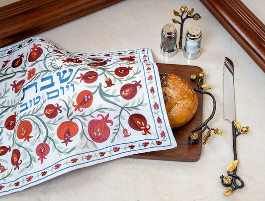 Silk Embroidered Challah Cover – Joyful Pomegranates