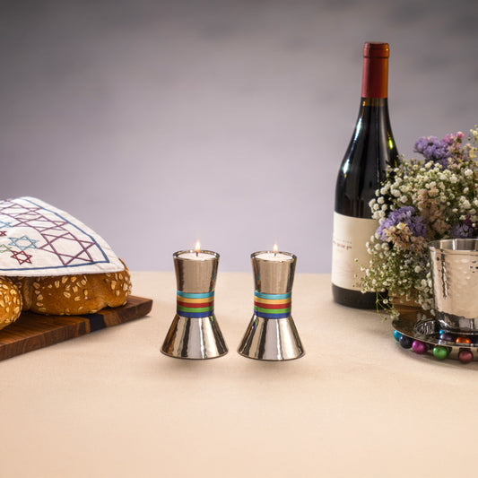 Hammered Nickel Shabbat Candle Holders - Colorful Aluminum Rings