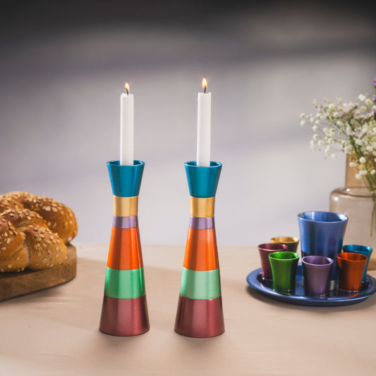 Anodized Aluminum Pillar Shabbat Candlesticks Holders – Multicolor