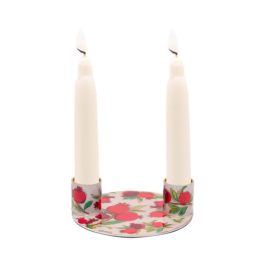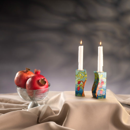 Flat Plate Shabbat Candle Holders – Hand-Painted Pomegranates