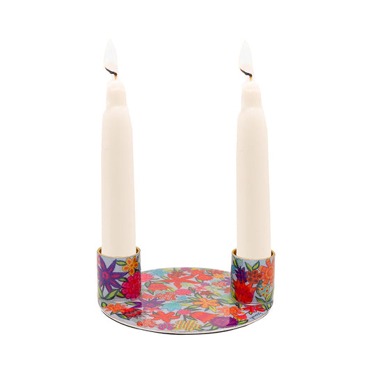 Floral Pillar Shabbat Candle Holders – 6.3” Floral Print