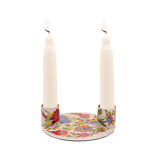 Floral Pillar Shabbat Candle Holders – 6.3” Jerusalem Print