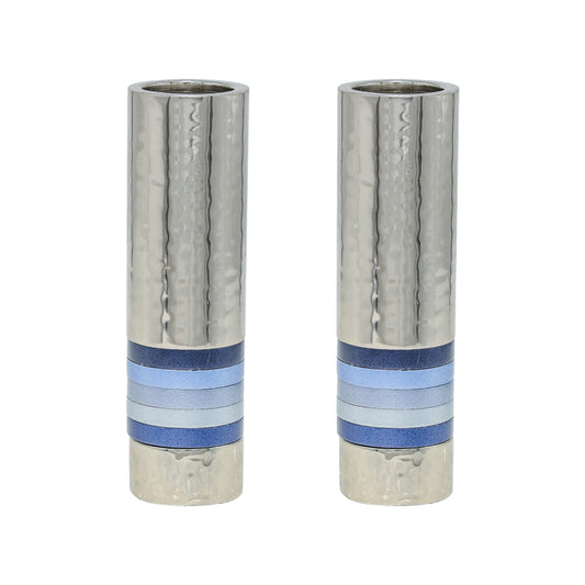Anodized Aluminum Pillar Shabbat Candlesticks Holders – Shades of Blue