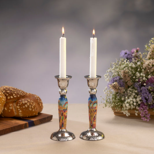Hand-Painted Shabbat Candle Holders – Jerusalem
