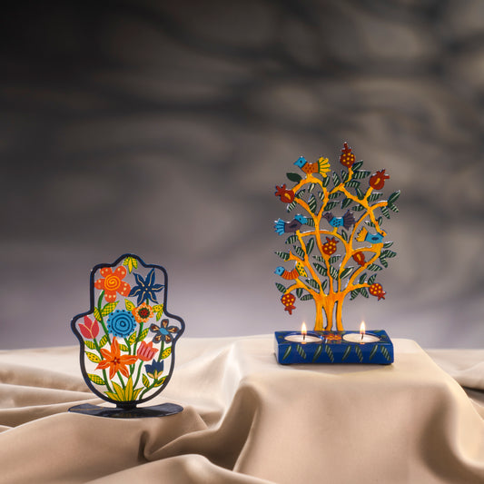 Hand-Painted Shabbat Candle Holders – Tree of Life