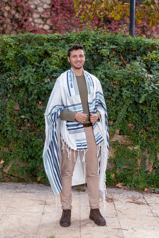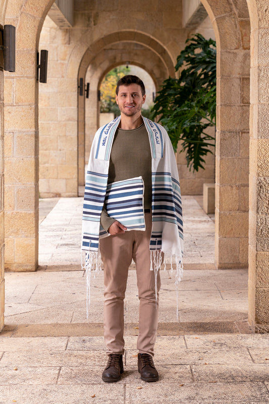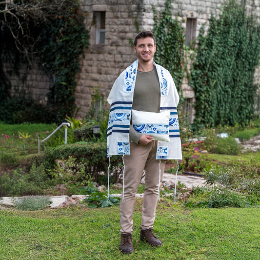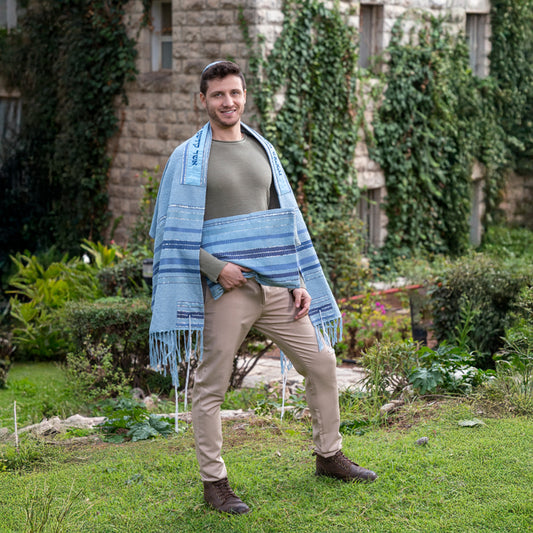 Blue Hand-Woven Tallit Set – Cotton and Silk