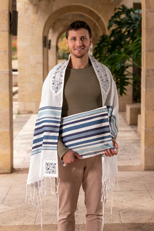 Embroidered Silk Tallit Set - Matriarchs Blue