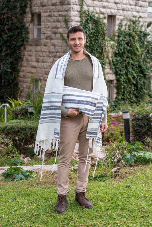Gray Woven Tallit Set – Hand Woven Cotton and Silk