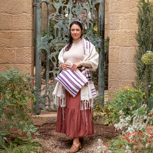 Gray and Pink Hand Woven Tallit Set