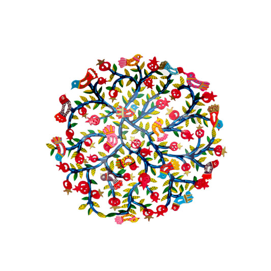 Hand-Painted Metal Bowl – 10" Pomegranates Tree of Life