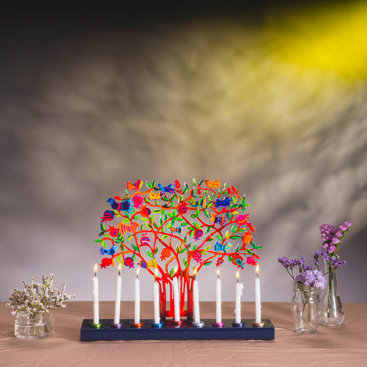 Hanukkah Menorah - Colorful Lazer-Cut Tree of Life