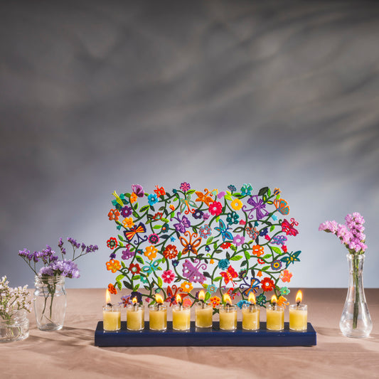 Hanukkah Menorah - Colorful Lazer-Cut Birds and Butterflies