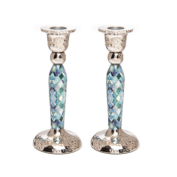 Modern Pillar Shabbat Candle Holders – Intricate Colorful Design 6.5-Inch