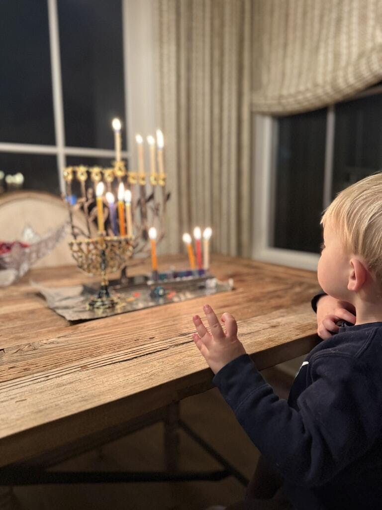 This was the perfect Hannukah gift for my 2-year old grandson. He absolutely LOVES it and enjoyed helping to light his own very special menorah
