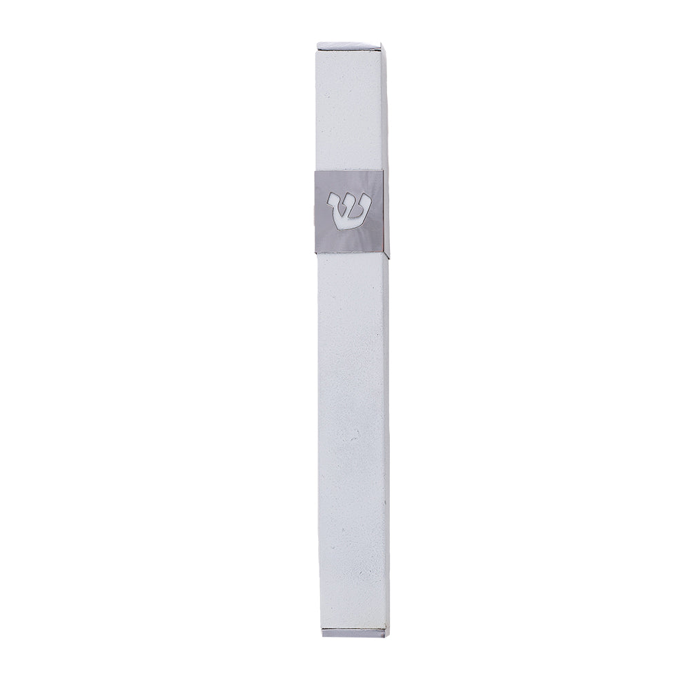 Enhance your doorway with this elegant ezuzah case featuring a square edge design and a silver Hebrew letter Shin. Crafted from sturdy metal, it fits a 12 cm scroll (scroll not included) and comes with self-adhesive backing for easy installation—no nails required. The classy solid color and timeless look add shine and sophistication to any doorpost. Perfect for any room in your home, school, synagogue, or office building. Designed by famed Judaica artist Yair Emanuel from his Jerusalem studio, this Mezuzah case blends traditional motifs with modern aesthetics.