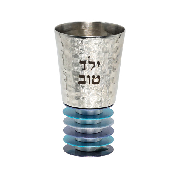 Small Hammered Aluminum Kiddush Cups with Engraved 'Yeled Tov' and 'Yalda Tova'